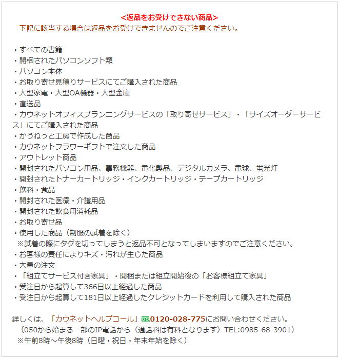 ※組立てサービス付家具の返品についてはFAXいたしません。